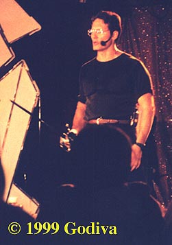 Bill Panzer was asked a number of questions and gave a number of answers. Yes, they are looking into releasing the Highlander series on DVD. (Mazeltov, Big John.) But they're not ready yet. They're studying the market for the best time. When the price of DVD players and software has hit a place where the market starts to really build, that's when they'll do it. They're also considering releasing The Raven episodes as well and he said yes, they were considering it and is was more than possible. He was also asked if longtime customers, i.e. those that already own all the tapes, will get a deal on the DVD and he said yes, as they believe in rewarding loyalty.Bill was also asked if he would consider a Methos series. "Absolutely" he said. But it would depend on if Peter and Jim were available as he seemed to be quite philosophically opposed to recasting other actors in roles of characters that were created by other actors. Whether there is a new series will also depend on the success of the movie. IF it generates interest of a financial kind with the money people and IF they want to finance a Methos show. You can bet all the attention Peter and "Methos" got, to Bill's surprise, at Anaheim has not gone unnoticed. Methos is in the movie. Voilá!( And you thought I was just precogniscient.)