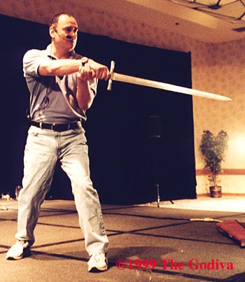 Mark Ryan told us the British Stunt Organization wanted to honor Bob Anderson with a 'handle' befitting him and reflecting their admiration and respect. Bob Anderson is known as "The Silver Blade". He related a rather amusing story about how he came to be Bob's assistant on First Knight. And that Bob says three things about the business: 1. Nothing's fair. 2. You're only as good as your last job. 3. Never let a producer or director get their hands on a sword.About handling a sword Bob says this: Using a sword is like sex. It's all a matter of balance, leverage and timing.